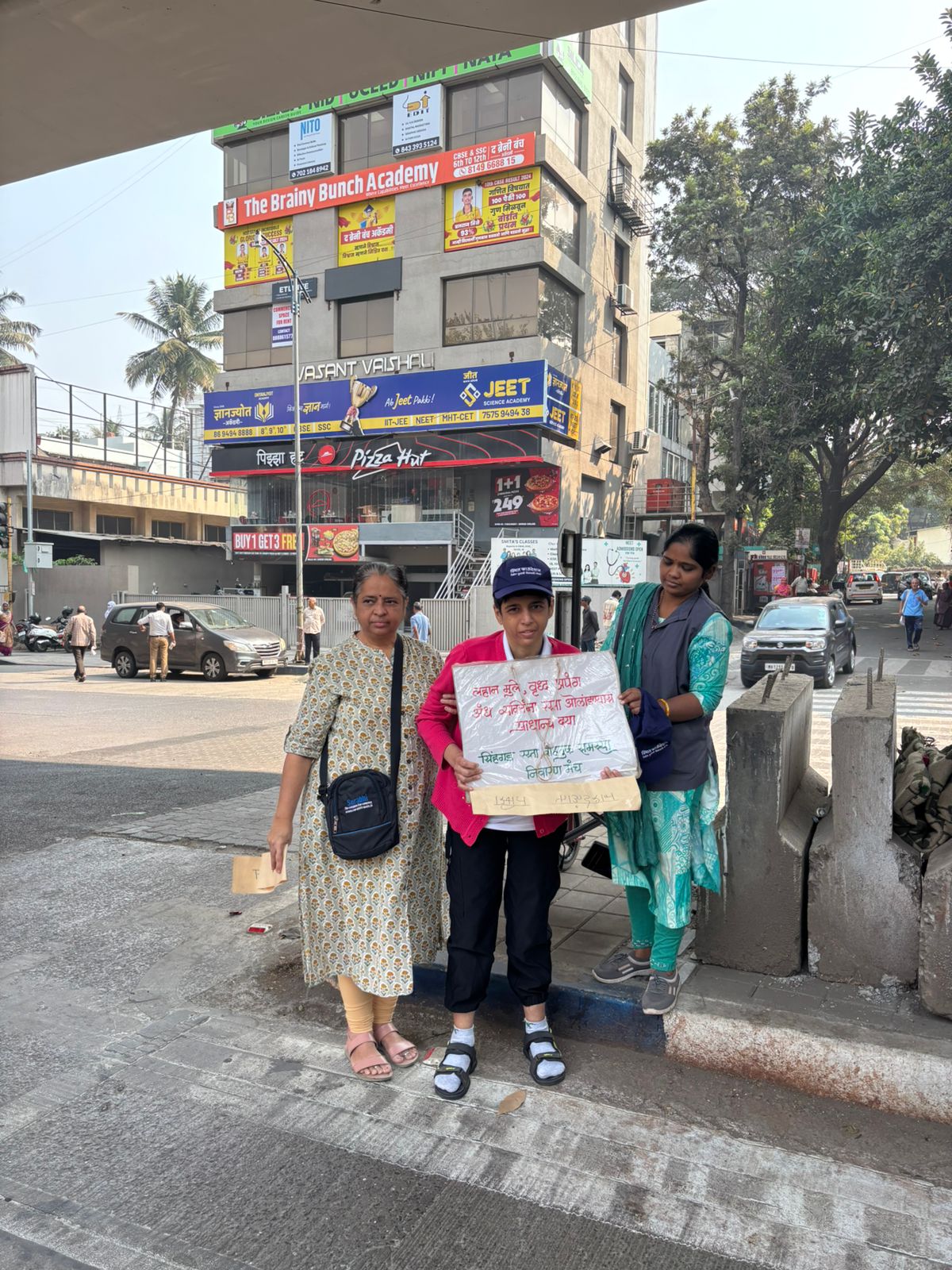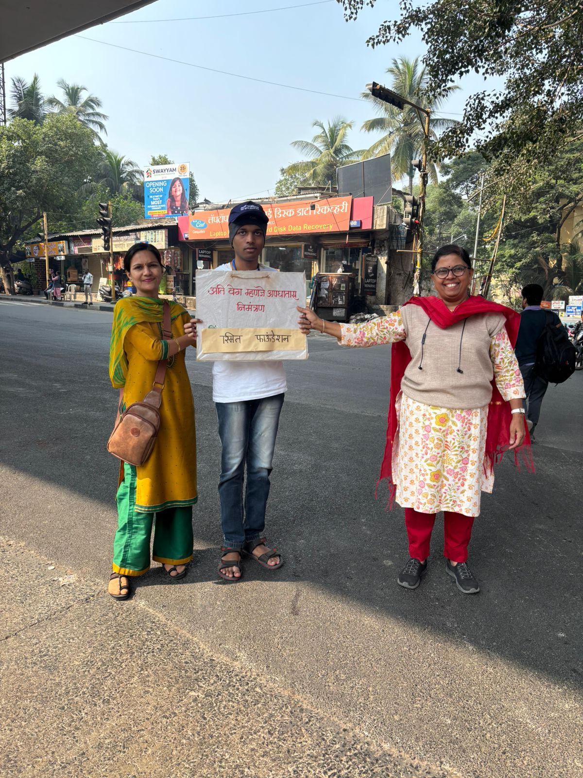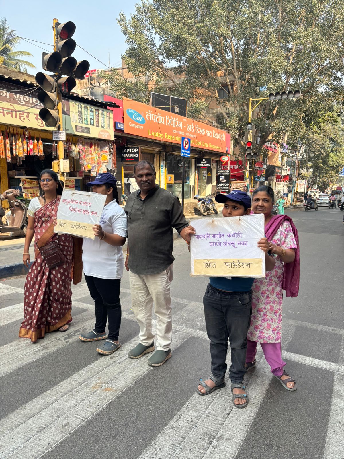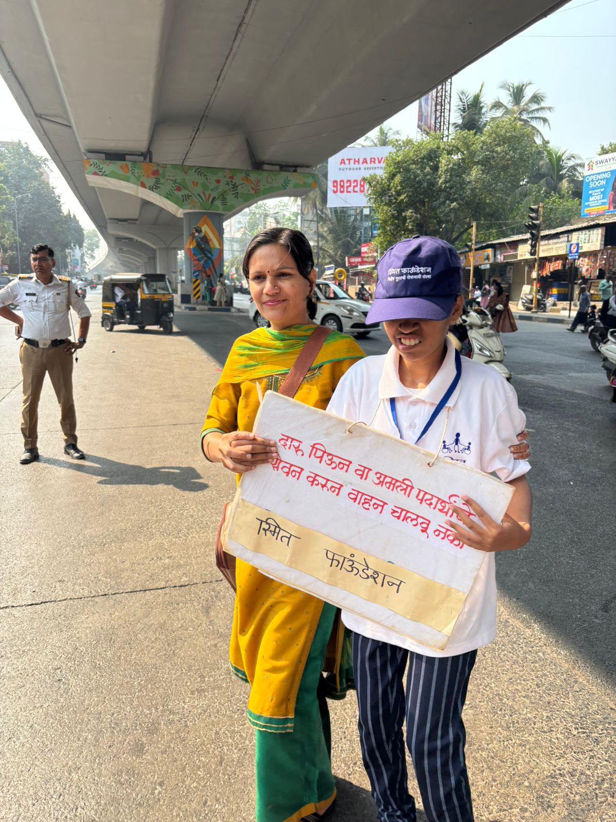 ३ डिसेंबर – जागतिक दिव्यांग दिन या निमित्ताने स्मित फाउंडेशन मधील २० ते २५ दिव्यांग मुलांनी, रिझन ट्रॅफिक फाउंडेशनच्या सहकार्याने सिंहगड रोडवरील भा. द. खेर (संतोष हॉल) चौकात सकाळी ११ ते १२ या वेळेत रस्ते सुरक्षा व वाहतूक नियमांचे प्रबोधन केले.